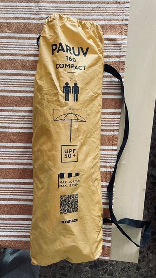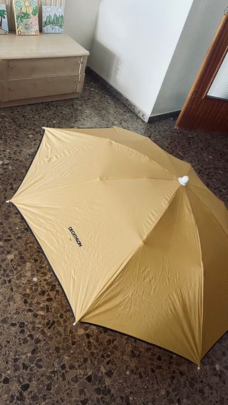 Sombrilla de la marca Decathlon en color amarillo. - Tejido resistente upf +50 -diseño compacto: cerrada queda en 50cm Es muy facil de transportar ya que se dobla mucho