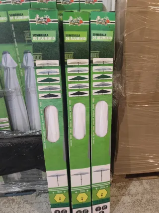 Set de tres sombrillas de terraza de la marca Garden. Perfectas para disfrutar de tu espacio exterior. - Estructura de aluminio. - Tejido resistente.