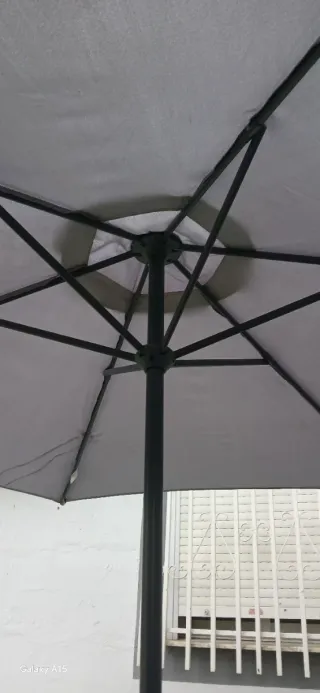 Vendo sombrilla de patio practicamente nueva. Lo compré, lo monté y luego inmediatamente lo reemplacé por uno más grande debido al tamaño del patio. -Diámetro 2 metros -Lo pagué 50€ en Bauhaus, lo vendo por 25€ -Retiro en la zona de Ángel Guimerá, Valencia