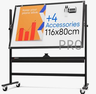 Pizarra Magnética Rodante de 116 x 80 cm - Grande de Borrado en Seco Portátil Con Soporte - Caballete de Doble Cara Con Ruedas - Móvil de Pie NOTA: Tiene un desperfecto, se puede ver en las fotos.