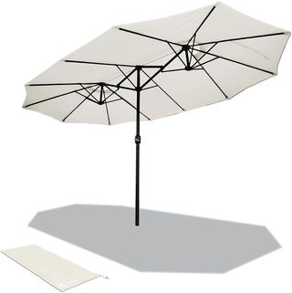 Sombrilla doble rectangular en color beige con estructura metálica negra. VOUNOT Sombrilla Parasol Rectangular, Sombrillas Jardin Grandes para Terraza Playa Piscina Mercado Patio Exterior, 460 x 270 cm, Protección Solar UV50+, Doble Beige 460 (L) x 270 (A) x 250 (Al) cm; Diámetro del mástil: 48 mm; Peso: 11,5 kg. Base no incluida. Nuestra sombrilla de jardín grande ofrece una mayor variedad de cobertura. - Diseño rectangular para mayor cobertura. - Dos sombrillas unidas en una sola estructura. - Tejido resistente a la intemperie Realizamos Envios a toda España, Italia y Portugal No Negociable! REF. 6157