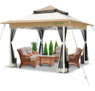 VOUNOT® Carpa Plegable Gazebo 3.6x3.6m con Laterales de Malla, Cenador Pabellón Pop Up de Jardín Techo Doble y Bolsas de Arena, Protección UV, para Camping, Fiestas, Exterior, Beige MarcaVOUNOT MaterialAcero aleado EstiloPop up Dimensiones del producto3,6l. x 3,6an. x 2,8al. metros Peso del producto18,7 Kilogramos Material del marcoAcero aleado
