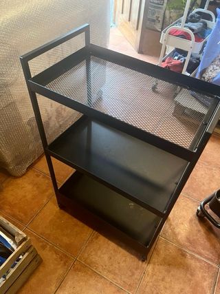Vendo el icónico carrito de IKEA modelo RÅSKOG en color negro. Es súper versátil, robusto y cabe en cualquier rincón gracias a sus ruedas. Se retira cerca del metro Callao Está en perfecto estado, muy bien cuidado y ya te ahorras el viaje a IKEA Detalles del producto: Color: Negro mate. Medidas: 35x45x78 cm. Diseño: Tres niveles con base de rejilla (fácil de limpiar). Movilidad: 4 ruedas giratorias (las dos delanteras tienen freno para dejarlo fijo). Estado: Impecable, sin apenas marcas de uso.