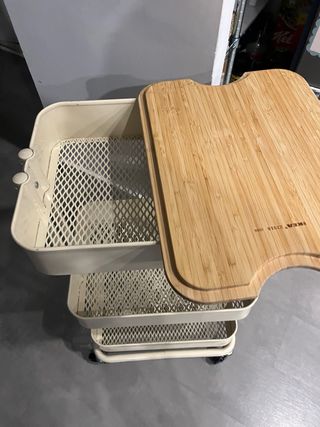 Carrito auxiliar Raskog de Ikea con tapa de madera. - Estructura de metal resistente. - Tapa de bambú. - Color crudo.