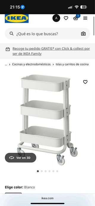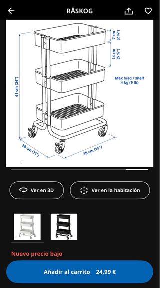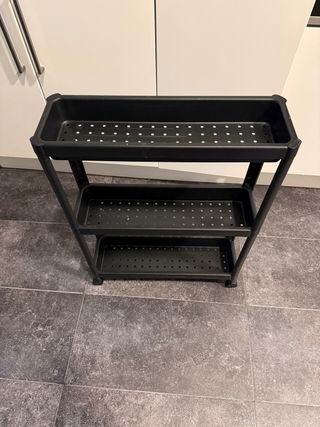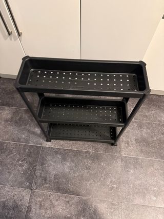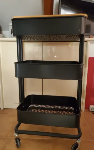 Vendo el icónico carrito de IKEA modelo RÅSKOG en color negro. Es súper versátil, robusto y cabe en cualquier rincón gracias a sus ruedas. Se retira cerca del metro Callao Está en perfecto estado, muy bien cuidado y ya te ahorras el viaje a IKEA Detalles del producto: Color: Negro mate. Medidas: 35x45x78 cm. Diseño: Tres niveles con base de rejilla (fácil de limpiar). Movilidad: 4 ruedas giratorias (las dos delanteras tienen freno para dejarlo fijo). Estado: Impecable, sin apenas marcas de uso.