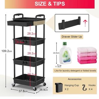 Nuevo Precio no negociable materiales y construcción duraderos: hecho de materiales de alta calidad, este carrito de baño está diseñado para un uso duradero, asegurando fiabilidad y robustez para todas tus necesidades de almacenamiento. Accesorios prácticos incluidos: este carrito de almacenamiento está equipado con cajones para una organización cómoda. Este carrito de almacenamiento rodante viene con tazas y ganchos colgantes adicionales, proporcionando practicidad adicional para almacenar varios artículos y mejorar la funcionalidad en tu espacio.