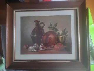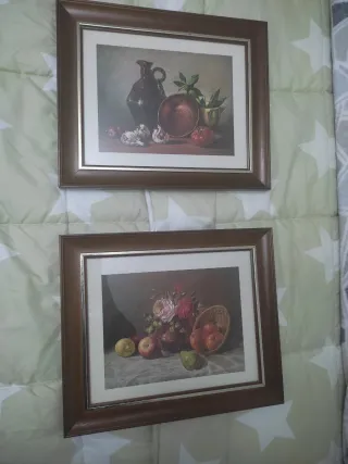 Conjunto de dos cuadros decorativos con motivos de bodegones. - No son pintados a mano, son láminas. - Marco de madera. - Cristales protectores.