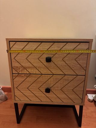 Mueble cajonera con un diseño clásico y elegante Las medidas estan en las fotos. - Cuatro cajones amplios. - Acabado en tono madera natural.