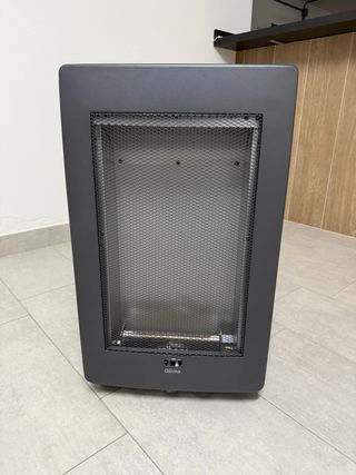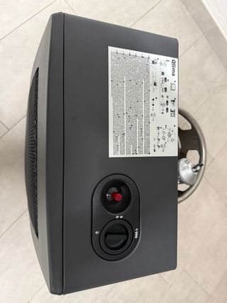Estufa de gas de la marca Qlima, con un diseño moderno y funcional. - Color gris. - Fabricada en metal.