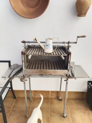 Barbacoa de acero con ruedas con todo los asesorio