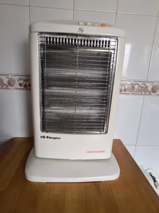 Calefactor halógeno de la marca Orbegozo. - Color blanco. - Base estable. - Panel de control superior. - Ideal para baños - Gira sobre su base
