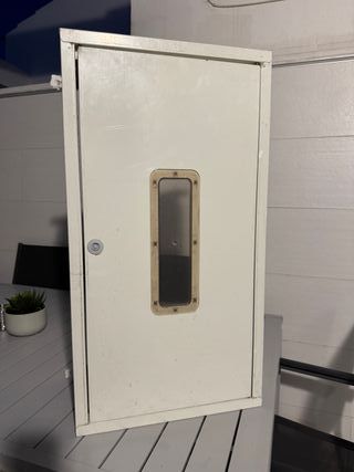 Caseta metálica para calentador de exterior. Cuenta con una ventana de plástico transparente. Todas las partes tienen el adhesivo, por lo que al quitarlo, se quedan las chapas como nuevas. El armario vale para todo tipo de termos de exterior. - Construcción robusta en metal. - Ventana de visualización. - Diseño funcional.