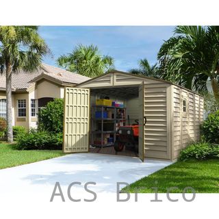 Nota : Falta techo !! Duramax - caseta cobertizo jardín - WOODBRIDGE PLUS 10.5 x 13 - Poliuretano PVC - color beige -marrón Marca Duramax Color Beige/Brown Material Poliuretano Dimensiones del producto 4,05f. x 3,25an. x 2,33al. metros Estilo Caseta Material de la base Cloruro de polivinilo (PVC)