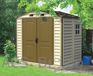 Caseta PVC Storeall 168x245x220 cm - Duramax Caseta de PVC STOREALL en con un diseño atractivo y un acabado en color beig/ marrón. Este cobertizo ha sido realizado sobre un resistente marco de acero, lo que le aporta una gran resistencia frente los cambios climatológicos. Además de contar con una excelente calidad y una garantía de 15 años de uno de los principales fabricantes mundiales, es perfecta para ubicar en cualquier lugar. Con una superficie de 4,12 m2 es perfecta para almacenar todo tipo de herramientas, utensilios y productos de jardín. La caseta STOREALL 8X6 no se oxida ni tampoco requiere ningún tipo de cuidado especi...