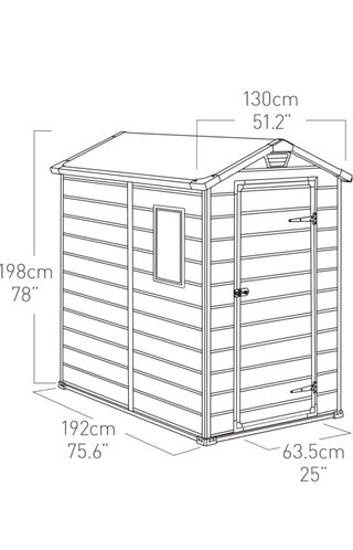 Keter Manor 4X6 - Caseta de jardín, 130x192x198cm y 2,2m2, Suelo, Sistema de ventilación, Puerta y Ventana, Resistente al Agua, Color Gris Marca Keter Color Gris Material Polipropileno extrusión Dimensiones del producto 198f. x 130an. x 192al. centímetros Peso del producto 44,5 Kilogramos Estilo Caseta Caseta de exterior e interior para almacenar todas las herramientas y utensilios de hogar y jardín. Su elegante diseño de imitación madera le da a la Caseta Manor gran funcionalidad. Incluye puertas y ventanas para entrada de luz natural, rejillas de ventilación y una cerradura para candados.