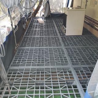 Material nuevo de fábrica. Precio por pack compuesto por 1 palet de pvc nuevo y su tablex madera con melamina para dejarlo plano. Se instala fácilmente y te explicaré como hacer en todo momento. No es rápido, pero no es difícil y no se requiere experiencia. Palets de plástico que mantienen el suelo elevado y así no entra agua ni barro en caso de lluvia. Ideal para avancé del camping para rulot, caravana, autocaravana... suelo de cocina, elevar caseta de jardín o realizar suelo si es de las metálicas sin suelo. También hago reparto sumando portes según km/pedido por gran parte de Cataluña. También ideal para hacer escenario portatil
