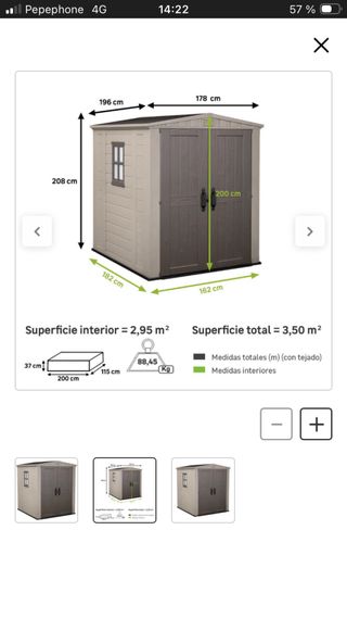Caseta de resina de la marca Factor, en muy buen estado. Ideal para almacenar o ampliar. El interior es mas grande de lo que aparenta en foto - Material de plástico resistente. - Comprada hace menos de 2 años, por 710€ (tengo factura) -incluye 2 estanterias Para mas info no dude en escribir!!