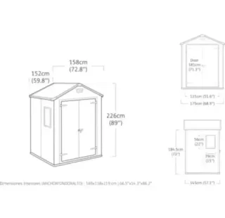 Nota : Falta una ventana ! Keter Manor 6X5 - Caseta de jardín, 185x152x226 cm y 2,5m2, Suelo, Sistema de ventilación, Puerta y Ventana, Resistente al Agua, Color Gris Marca Keter Color Gris Material Polipropileno extrusión Dimensiones del producto 226f. x 185an. x 152al. centímetros Peso del producto 55 Kilogramos Estilo Caseta