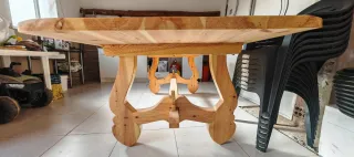Mesa de comedor robusta y espaciosa, ideal para reuniones familiares o de amigos. Su diseño rústico aporta calidez a cualquier espacio. - Fabricada en madera maciza. - Acabado natural que resalta la veta de la madera. - Patas sólidas y estables. 235m de largo x 99cm ancho, patas de 7 cm de ancho. Precio negociable.