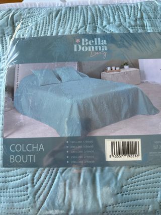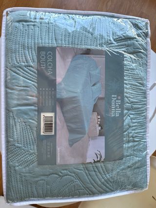 Colcha bouti en color aguamarina, ideal para cama de 105 cm. Presenta un diseño acolchado con un estampado sutil. - Medidas: 200 x 260 cm. - Incluye 1 funda de cojín de 50x50 cm.