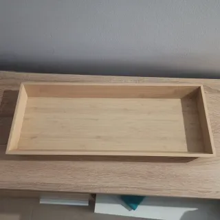 Bandeja organizadora de bambú con un diseño natural y elegante. - Material: Bambú natural - Dimensiones: 47 cm de largo x 19 cm de ancho.