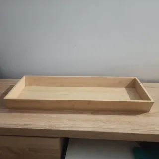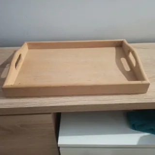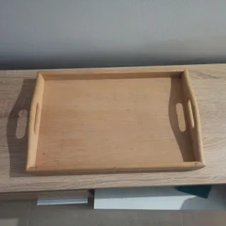 Bandeja de madera con un diseño sencillo y práctico, ideal para servir. - Material: Madera. - Asas integradas para facilitar el transporte.