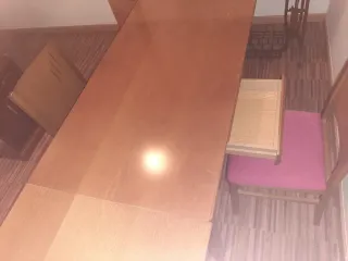 Elegante mesa de comedor con estructura de madera. - Diseño moderno y funcional. - Acabado natural de la madera.