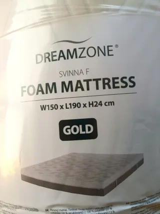 Colchón de espuma Dreamzone modelo SVINNA F, tamaño Gold. - Medidas: 150 cm de ancho x 190 cm de largo x 24 cm de alto. - Diseño: Scandinavian Sleeping & Living. El producto viene en envasado al vacío, es totalmente nuevo y sin taras de ningún tipo Las medidas del producto corresponden, aproximadamente, a las del paquete que lo contiene.