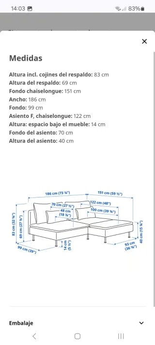 Sofa IKEA SÖDERHAMN 2 plazas chaise longue