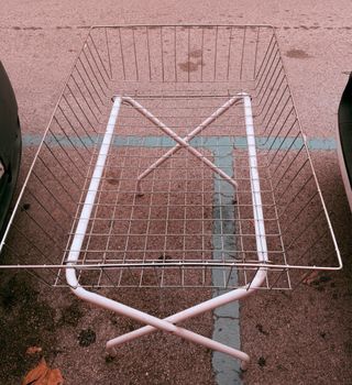 Cesta de alambre con estructura de metal. - Diseño abierto y espacioso. - Patas plegables para un fácil almacenamiento.