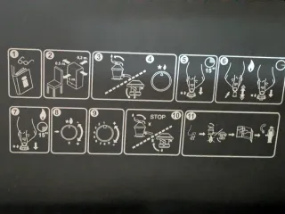Estufa de gas con un diseño moderno y elegante, combinando acabados en negro y gris. Ideal para calentar espacios de forma eficiente. - Frontal de cristal. - Panel superior de plástico.