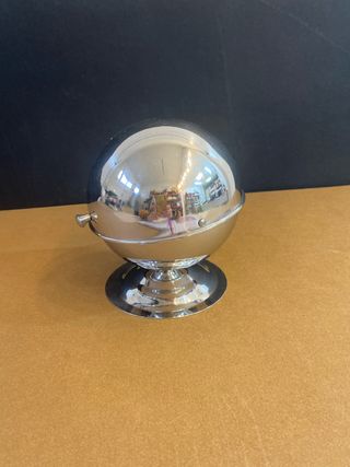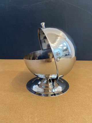 Elegante azucarero de acero inoxidable con un diseño esférico. - Base con pie. - Tapa - Acabado pulido.