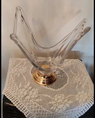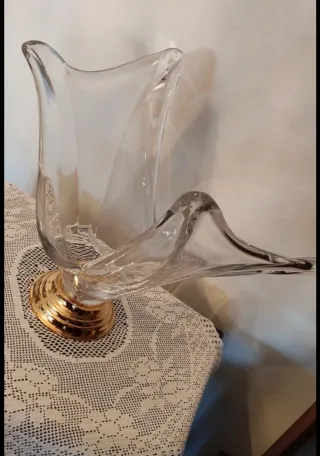 Jarrón de cristal con base dorada