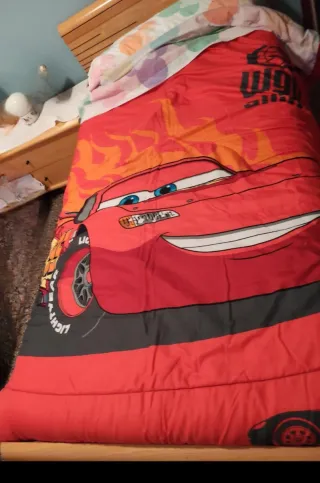Edredón con diseño del personaje Rayo McQueen de Cars. Perfecto para la habitación de los más pequeños. - Diseño reversible. - Relleno de poliéster.