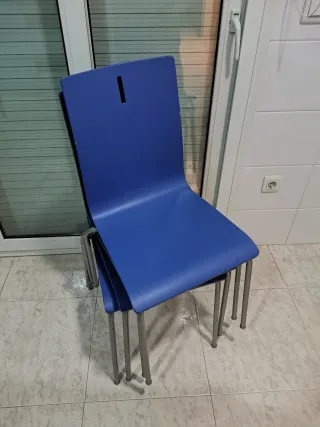 4 Sillas de madera y metal azul