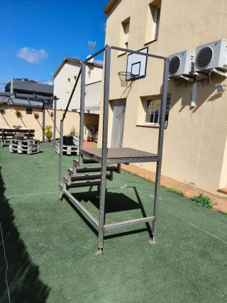 Escalera metálica, hecha a mano, muy resistente con plataforma, ideal para piscina elevada, jardín o terraza. ✔ Estructura fuerte y estable ✔ Con barandilla para mayor seguridad ✔ Patas regulables ✔ Perfecta para exterior Altura aproximada: 170 cm. En buen estado, tal como se ve en las fotos.