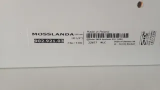2 Estanterías MOSSLANDA de IKEA de 115 cm + 1 estante Lack 110x26 cm. - Fabricada en Polonia. - Peso: 2 kg / 4 Lbs. - Dimensiones: 115 cm (45 1/4). - Código: 902.921.03.