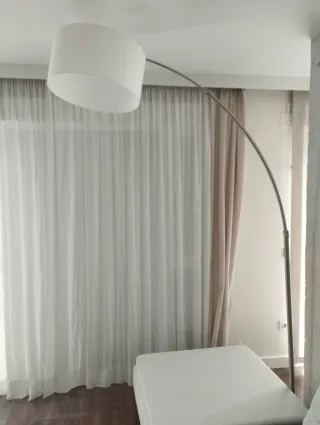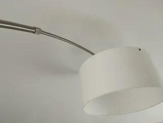 Elegante lámpara de pie con un diseño curvo y pantalla de color blanco roto. - Base y estructura de metal. - Pantalla de tela color blanco roto - Color dorado/grisáceo PRECIOSO! Se puede extender más, por lo que la pantalla puede alejarse más. Preguntar más medidas sin compromiso! NUEVA, NUEVÍSIMA!!! :) Se ha encendido una sola vez para ver si funcionaba!!! Está impecable!