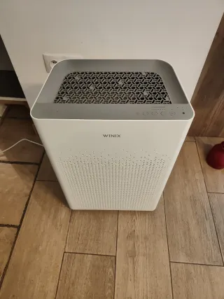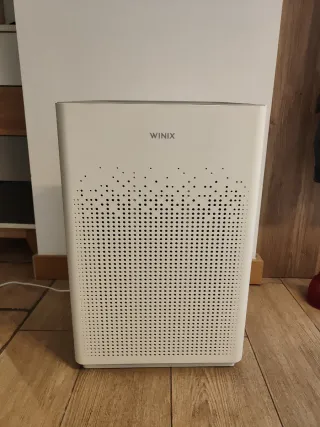 Purificador de aire Winix en color blanco. Diseñado para mejorar la calidad del aire en tu hogar. - Cubierta frontal con patrón de perforaciones. - Logotipo de la marca en la parte superior. - color blanco - muy buen estado,poco uso