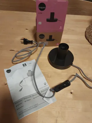Pie de lámpara de la marca Inspire, modelo Lina. Medidas en las fotos - Cable a rayas con interruptor. - Enchufe europeo. - Base redonda.