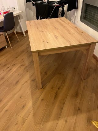 Mesa de comedor extensible, ideal para salones y comedores. Su diseño se adapta a diferentes espacios. - Acabado en madera natural. - Estructura robusta. - Patas con protección del suelo. (Explicación de medidas) Mesa abierta medidas: Largo: 180’5 cm Ancho: 90’5 cm Altura: 74’5cm Mesa sin abrir medidas: Largo: 135’5 cm Ancho: 90’5 cm Altura: 74’5 cm