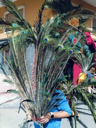 Conjunto de 20 plumas de pavo real surtidas , ideales para decoración. - Plumas naturales con ocelos. - Tonos verdes y azules iridiscentes. - Base de plumas largas y finas.