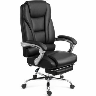 Sillón de oficina ergonómico con un diseño moderno y confortable. - Tapicería de cuero. - Base y reposabrazos de metal. - Ruedas para fácil movilidad.