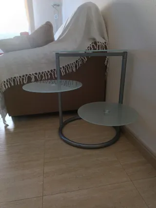 Mesa auxiliar con un diseño moderno y elegante, perfecta para complementar tu espacio. - Superficie de cristal. - Patas de metal con acabado negro. Recoger en Mutxamel San Vicente o Castalla