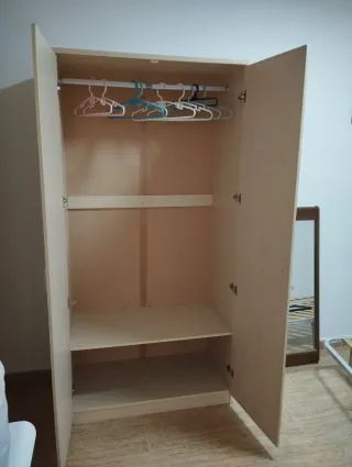 Se vende habitación completa o únicamente la cama tipo nido. NO muebles por separado. - Cama tipo nido con base de láminas y cajones amplios. Medidas: las que se muestran en el apartado medidas. - Dos colchones incluidos y almohada. - Escritorio con mueble zapatero y estructura con cajones. Medidas: 260x53x75cm. - Estantería. Medidas: 85x30x217cm. - Cómoda. Medidas: 80x40x110cm. - Baldas pared. Medidas: 103x25x36cm. Precio cama nido: 300eur. Precio habitación completa: 650eur.