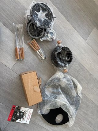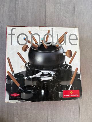 Está nuevo, nunca se ha usado. Set de fondue oroley con acabados en negro y madera. Incluye todos los accesorios para disfrutar de una fondue. - Olla principal. - Soporte. - Varios cuencos. - Tenedores con mango de madera. #fundir quesos fundido Cualquier duda escríbeme!