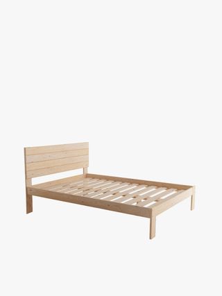 Estructura de cama de madera con cabecero. - Medidas: 135x190 cm. - Diseño de listones en el cabecero y la base.