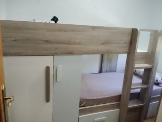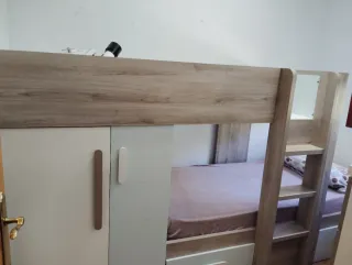Litera juvenil con un diseño moderno y funcional. - Combinación de madera y blanco. - Estructura robusta.