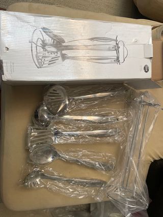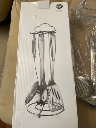 Set de utensilios de cocina con soporte para colgarlos AMC, nuevos a estrenar y en su caja - Incluye soporte. - Fabricados en acero eterno de alta calidad. más artículos amc en mi perfil hago envíos