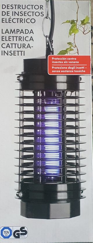 Se vende LÁMPARA ULTRAVIOLETA destructora de mosquitos sin VENENO. Para Noches tranquilas al aire libre, zona de comida, etc. Se venden varias unidades 1 ... 25€ 2... 40€ 3... 60€ Nuevas, sin estrenar, en su embalaje original